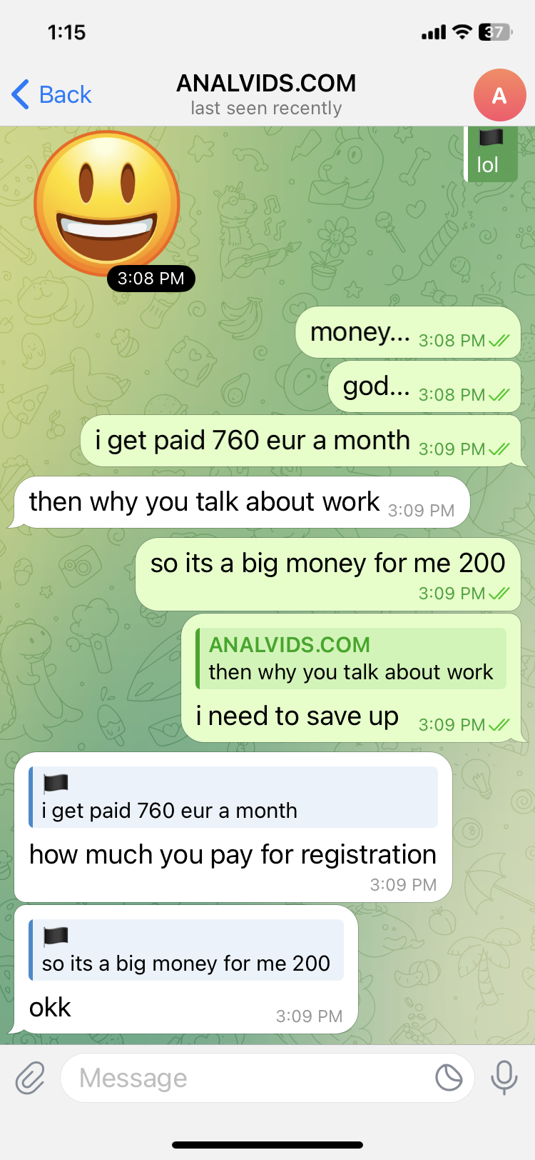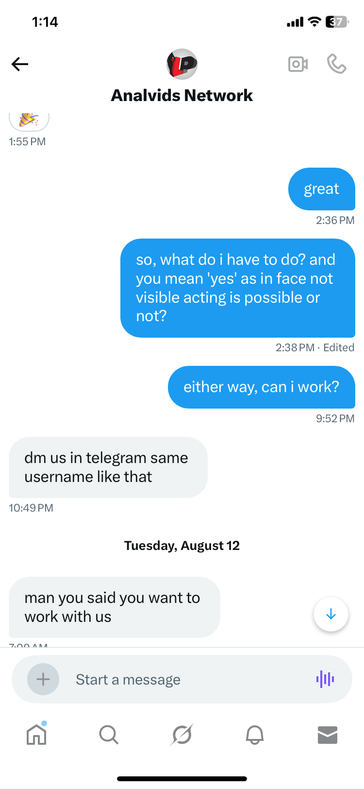 Uaa566 wrote:I have been messaging with @Analvidsnetwork on telegram and X. They asked me to pay 215€ or something to be casted to act in their vids. they said they will pay 600€ per scene (im straight male). i am very confused about me paying to be casted TO get paid for acting. can anyone help me about the validity of these accounts?