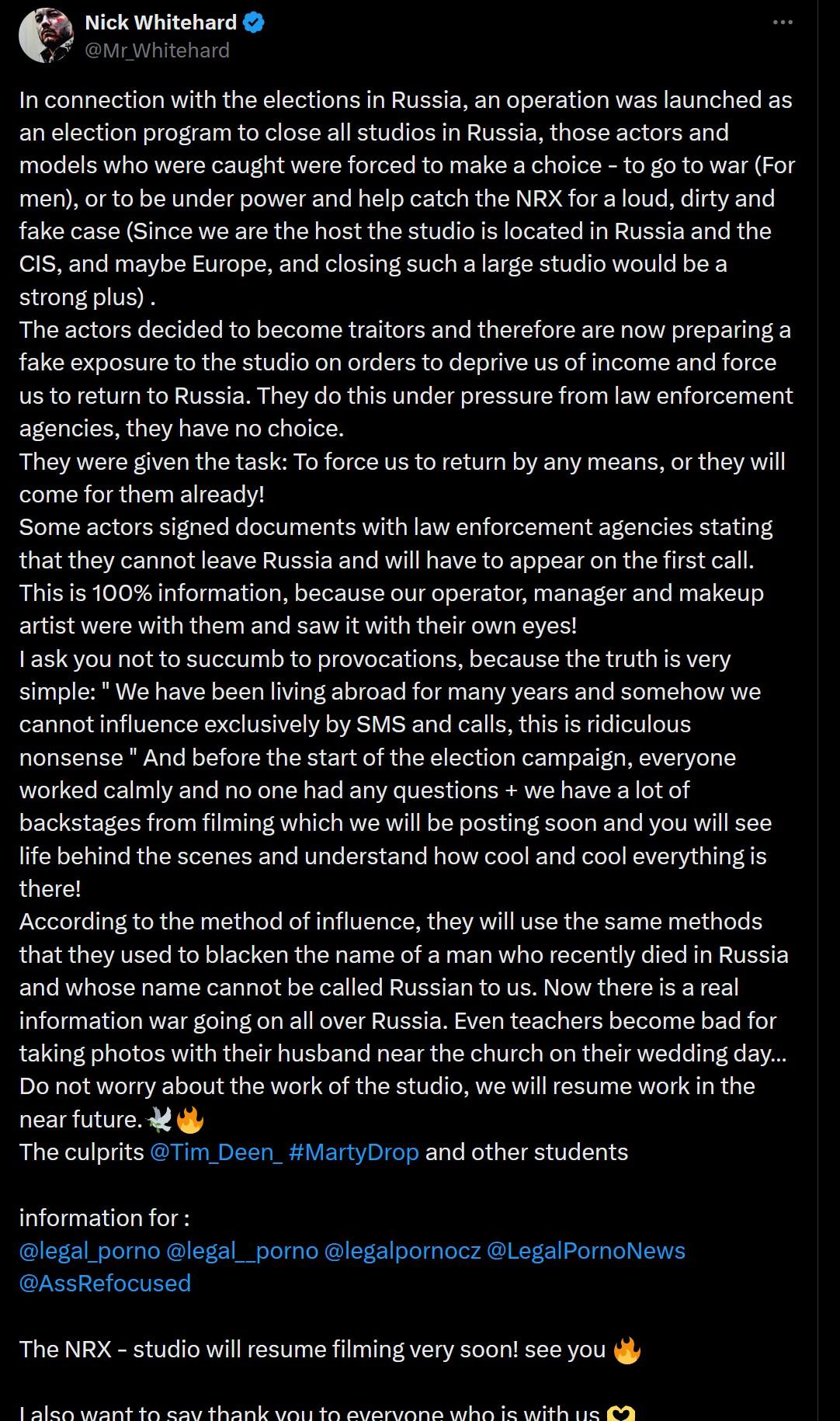 Hi guys, everyone! I have some bad news for you. The NRXstudio is closing . For many years, I have delighted you with my incredible content. But I am very tired of the industry. I make way for younger and more promising performers and producers such as