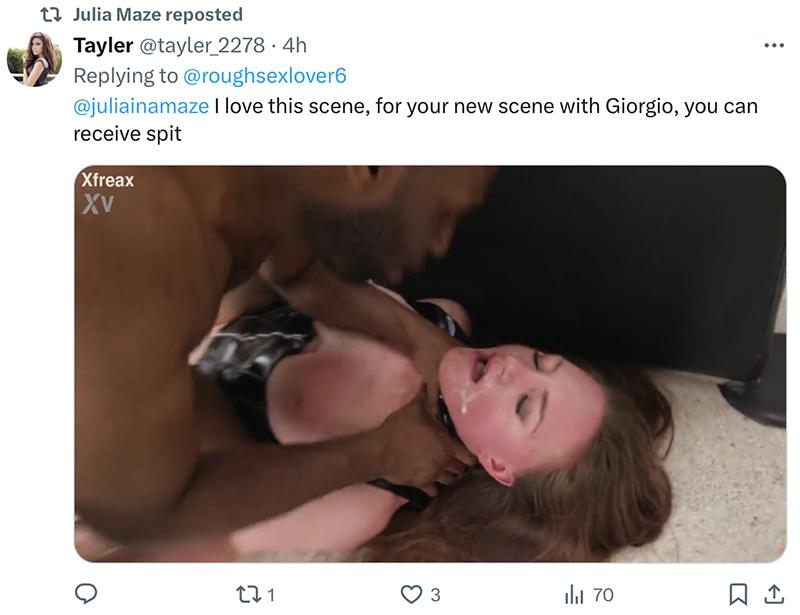 It shows, Julia loves hardcore scenes, she loves being dominated by men.