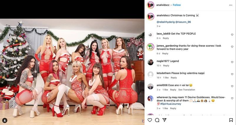 I'm afraid that with current situation in porn world, creating a 5-10 porn star Christmas orgy scene is just not financially worth it.