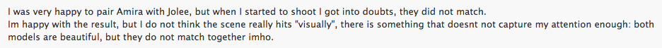 [quote="Giorgio Grandi"]I was very happy to pair Amira with Jolee, but when I started to shoot I got into doubts, they did not match.