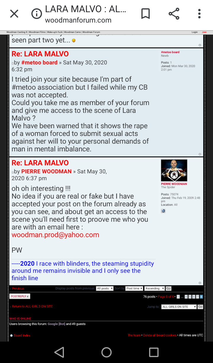 Woodman in his forum deny these post in spanish and say that he don’t play the game this way but the true is that several times he threat me by whatssap with that stupid pic stoled from my IG and also telling me that he has my passport/ID data. Lies, threatings, blackmailings... that’s what his whole life is about.