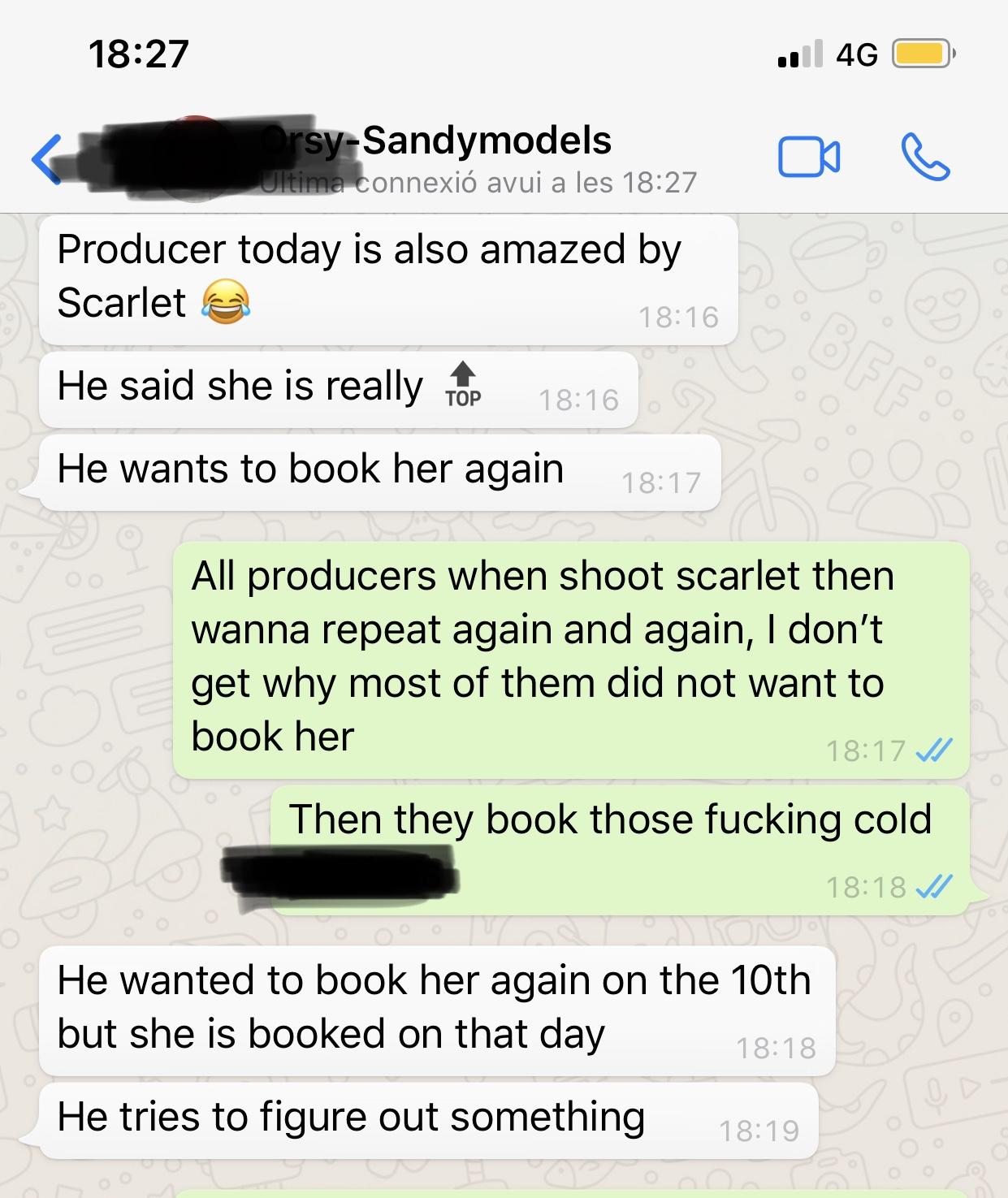 It’s me who recruited Scarlet for Orsy-Sandys and was myself who asked and allowed to the agency to offer Scarlet to PW. Unfortunatelly Scarlet had not enought bookings in BP and at this point thanks to PW she got some more jobs with him, because he is who booked her the most.