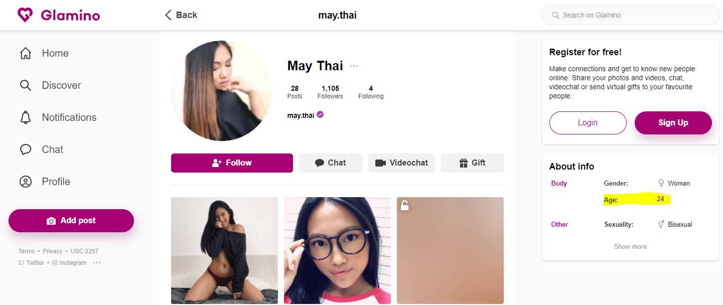 The only current/active source with her actual age is her Glamino page which shows May Thai's age as 24 https://www.glamino.com/may.thai
