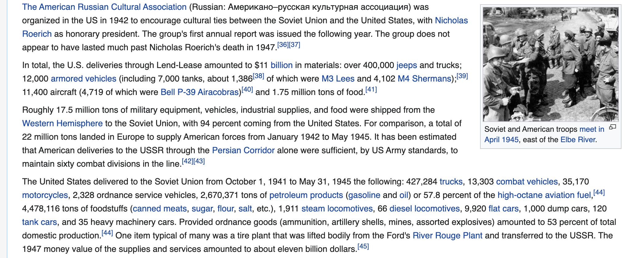 Mister Ananas wrote:Soviet military pressure on Germany’s territory won the war. This is indisputable. Also, while it’s easy to say that the United States won in hindsight, they were not the only ones who came out of it as a superpower. Russia did too.