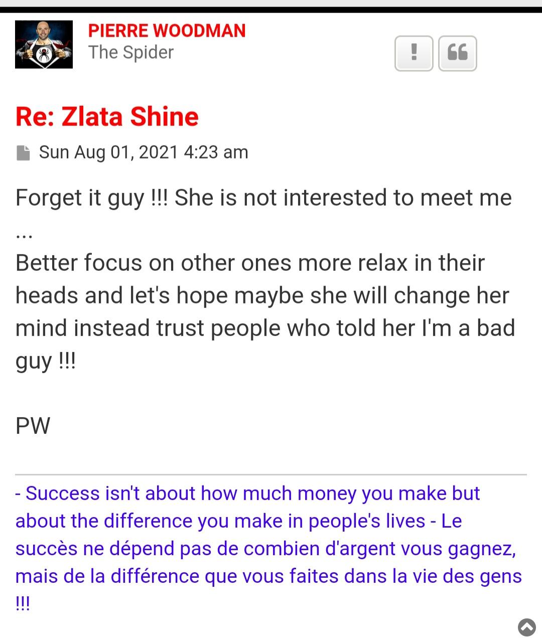 It's funny how all these girls who spoke bad about PW in the past is suddenly in the good books with him again. He either blackmails or pays them shit load of money. Latest post on his forum is about Kittina who once made fun of Woodman calling him a joke and poking fun at him,something which he stupidly interpreted as her saying something 'good' about him, when it was actually Kittina talking trash about him lol. But due to his French, he never understood the jibe that she chimed in on after Mike Angelo exposed him with Cayein Klein.He went as far as to ask her about Kittina about the incident and we all know ehat happened next, he threatened Kittina to the point he asked her to post a picture on [spam] to 'prove' he is a good man lololol. Why would she randomly post a pic on [spam] to say she is a Woodman girl.