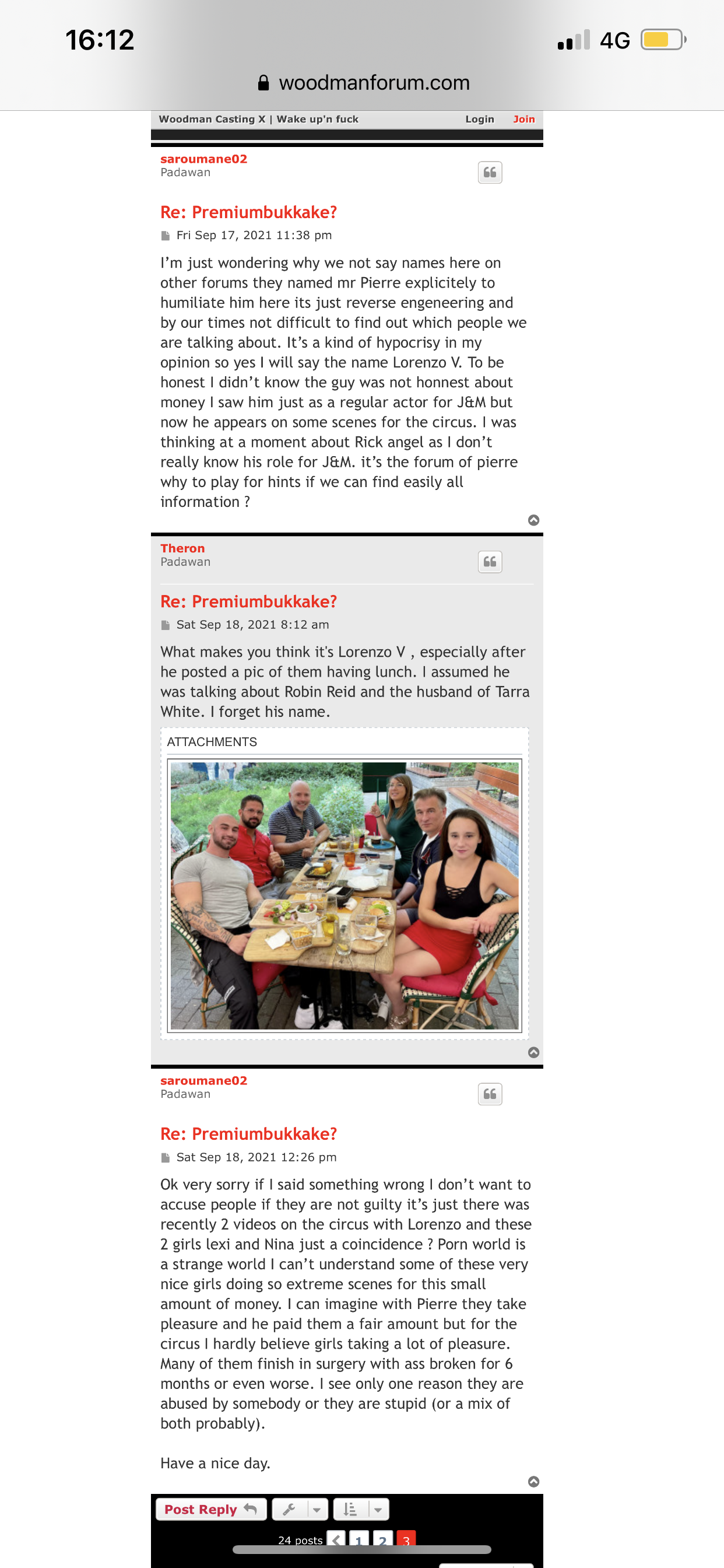 I did think that Jean and Pierre were separate posters but you are right, that rant is classic Woodman. Begs the question how many posters on that forum are Woodman aliases. Most of the posters that defend him or attack the unbelievers - not so much the poor sheep pleading for a scene to be released five or more years later. They still haven’t realised that the whole enterprise is an excuse for him to sodomise young women at the expense of his loyal membership. Oh and to help their careers of course.