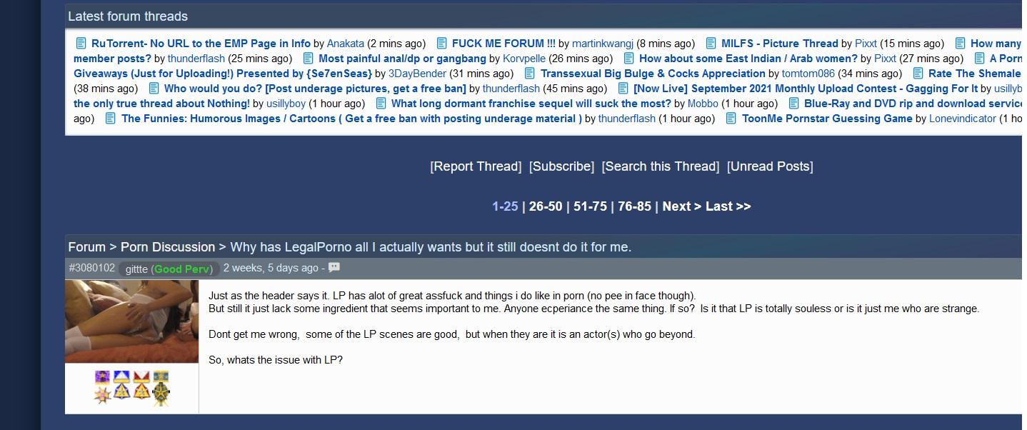 I think everyone hit the reasons in previous comments. Pissing and prolapse do not do it for me and the scenery gets boring. Like, the immorallive scenes with Porno Dan had the worst scenery in history, but still managed to be better than LP.